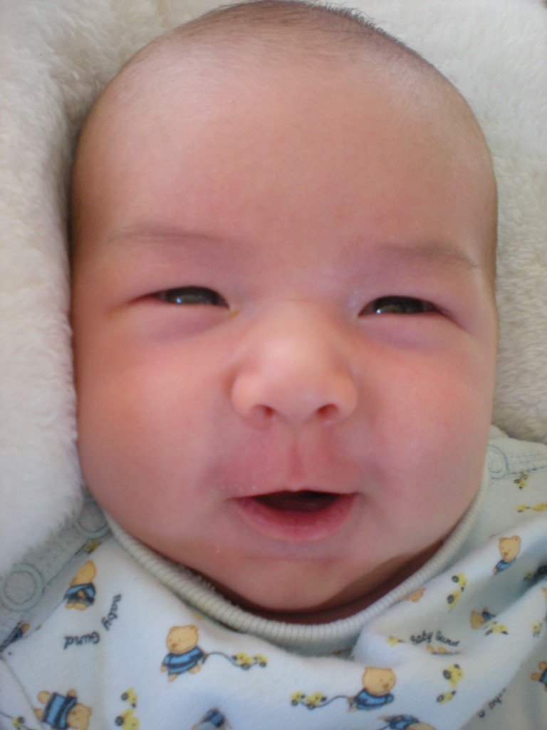 Here's his cute little smile. The picture is about a week old.